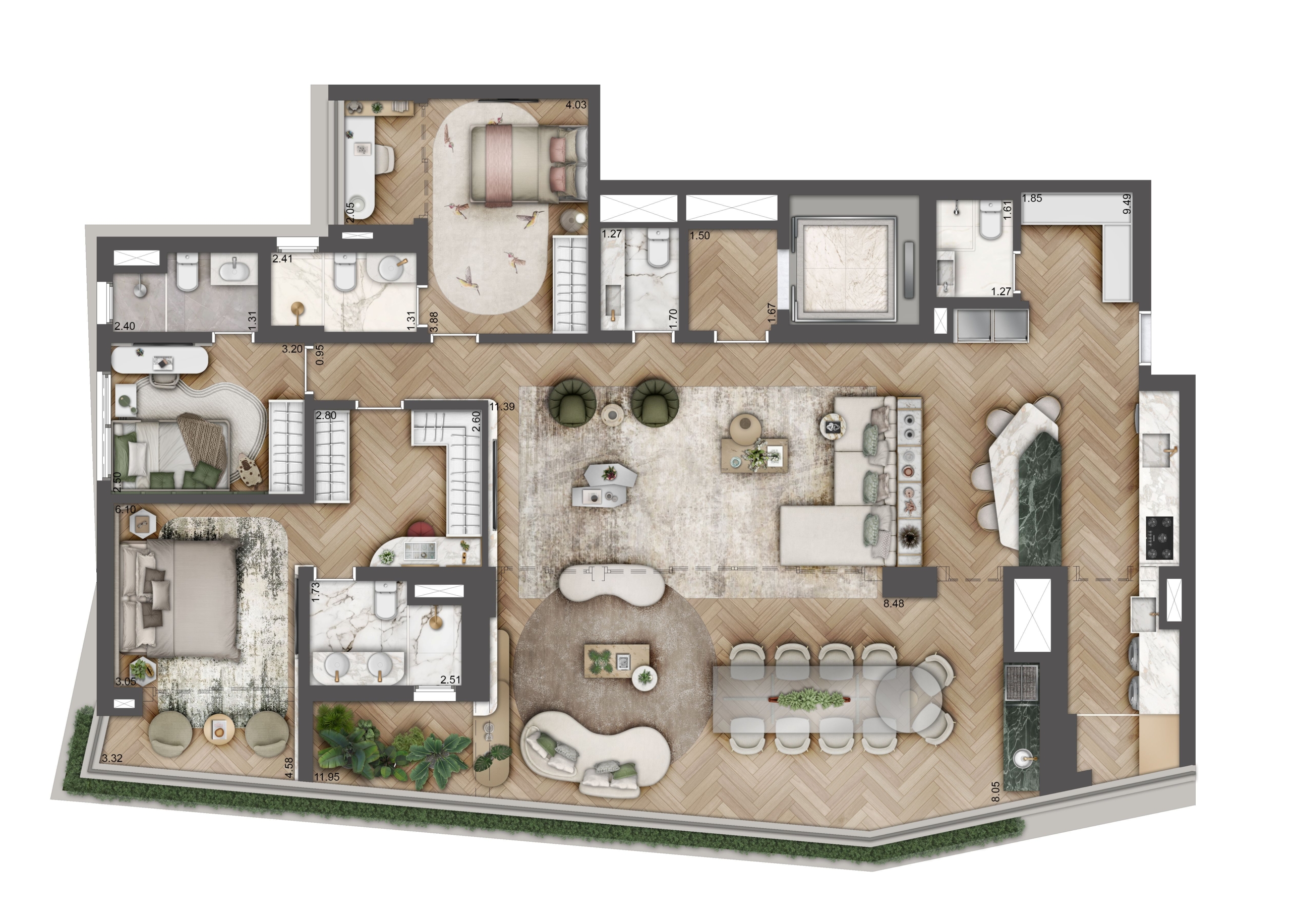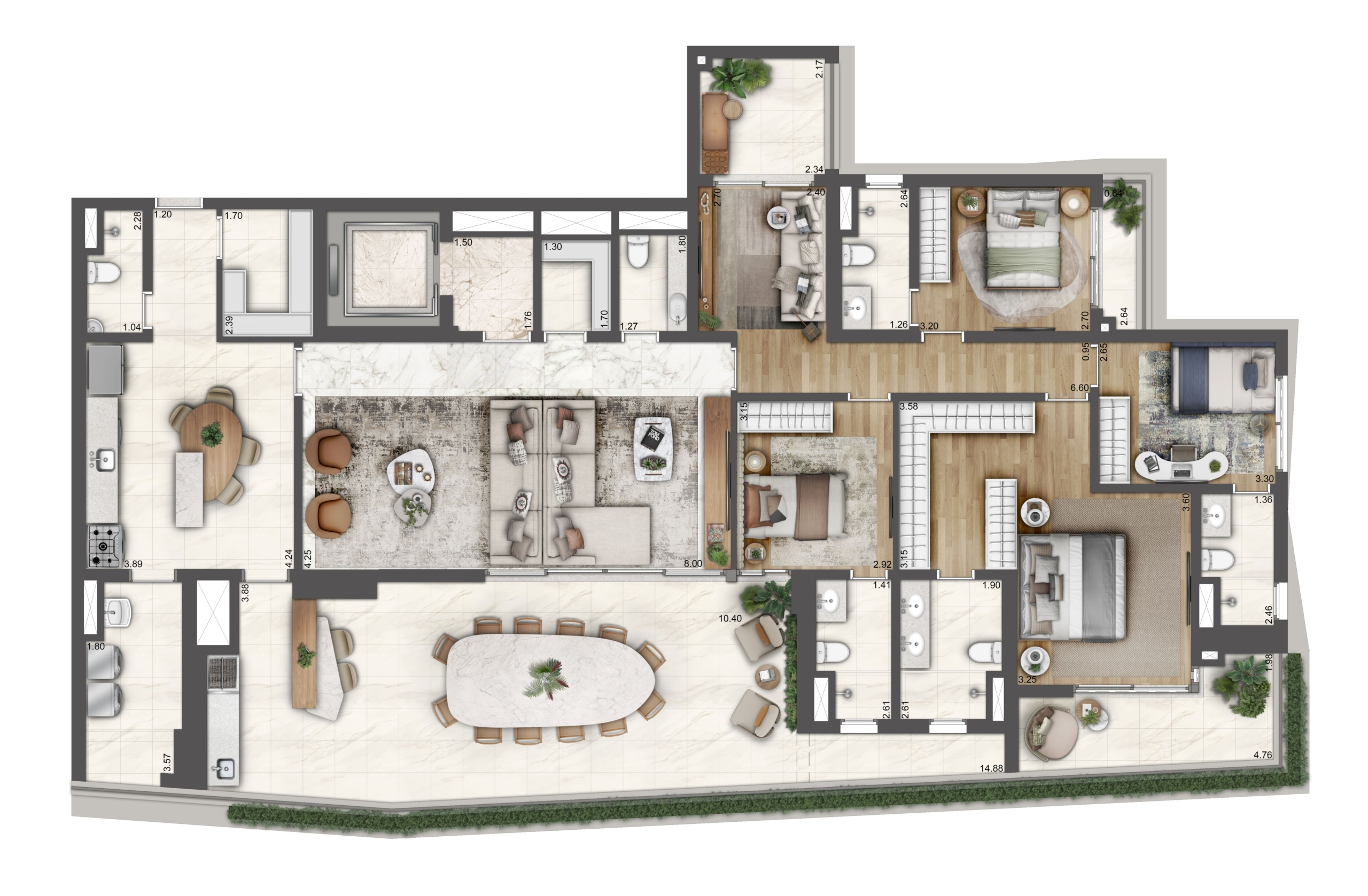 190 m² e 258 m² | 3 ou 4 Suítes | 2 OU 3 VAGAS