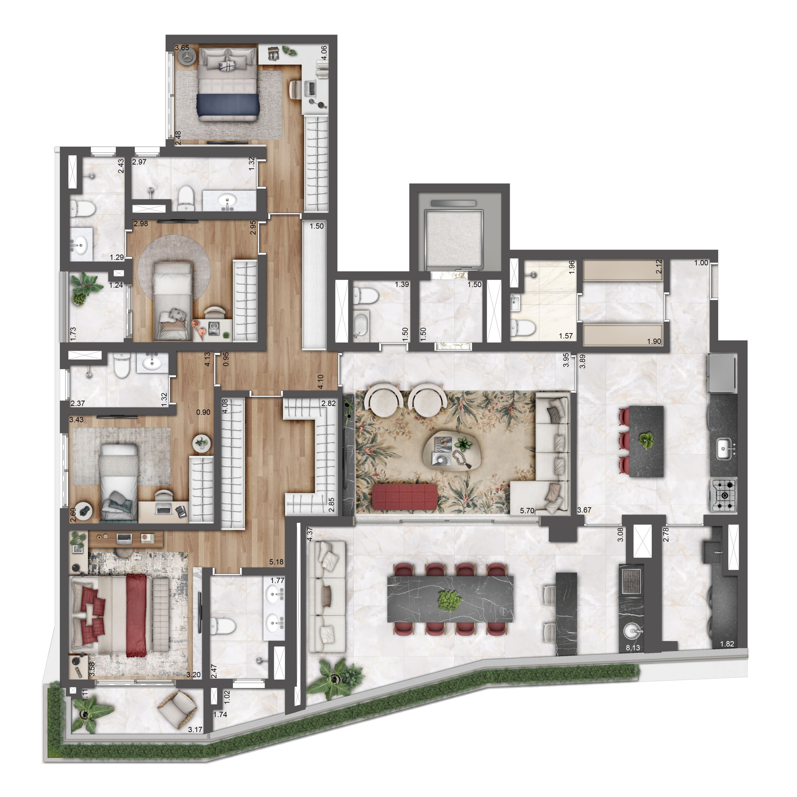 156, 203, 264 m² | 4 dorms | 3 e 4 suítes | 2 ou 3 vagas