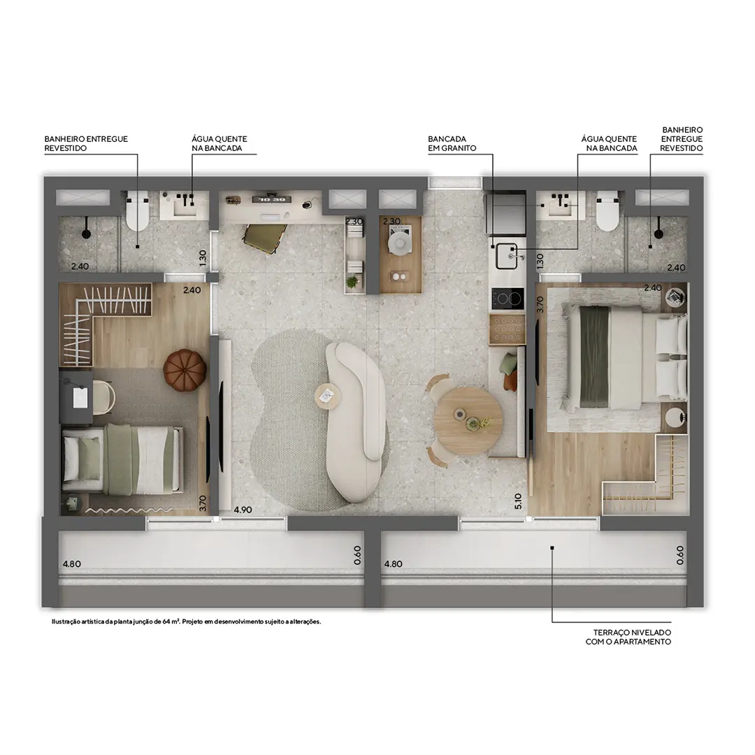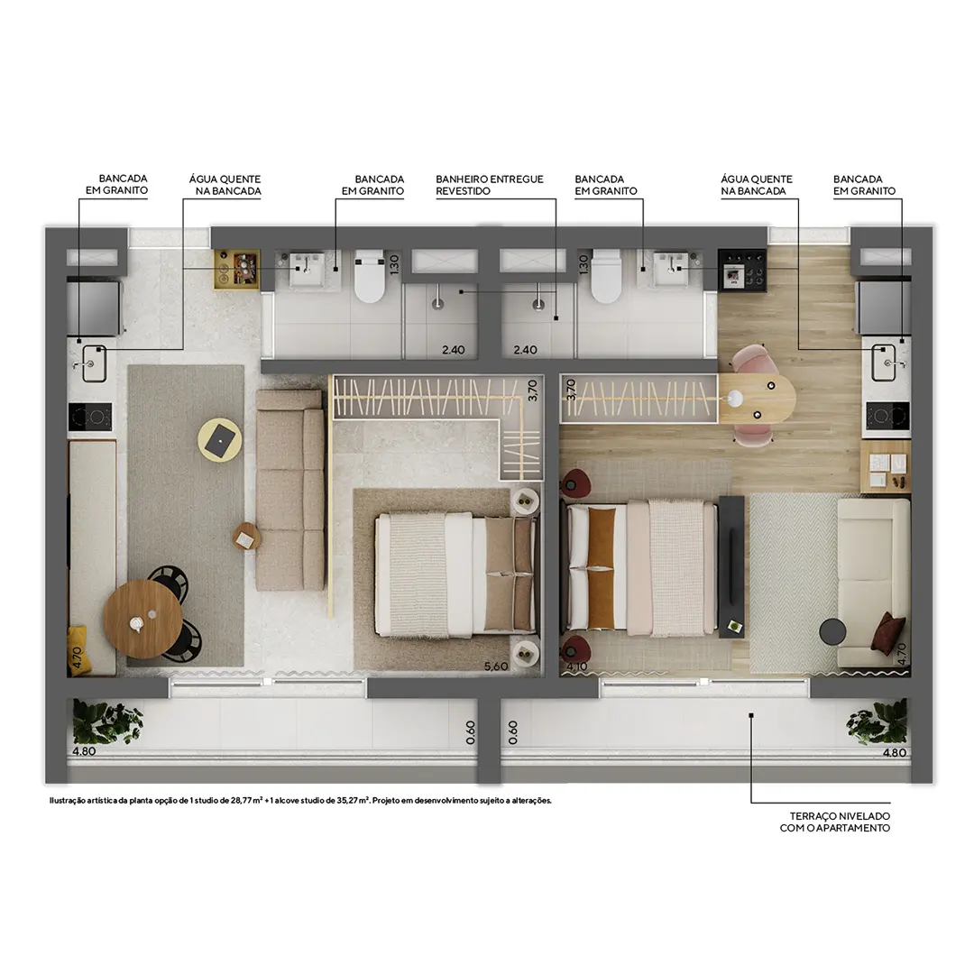 61 a 67 m² | 1 dorm. | Penthouse