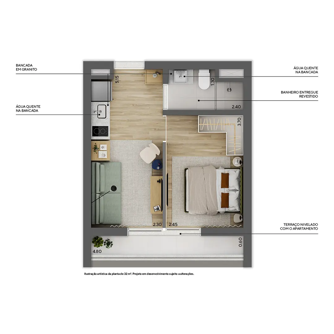 27 a 34 m² | 1 dorm.