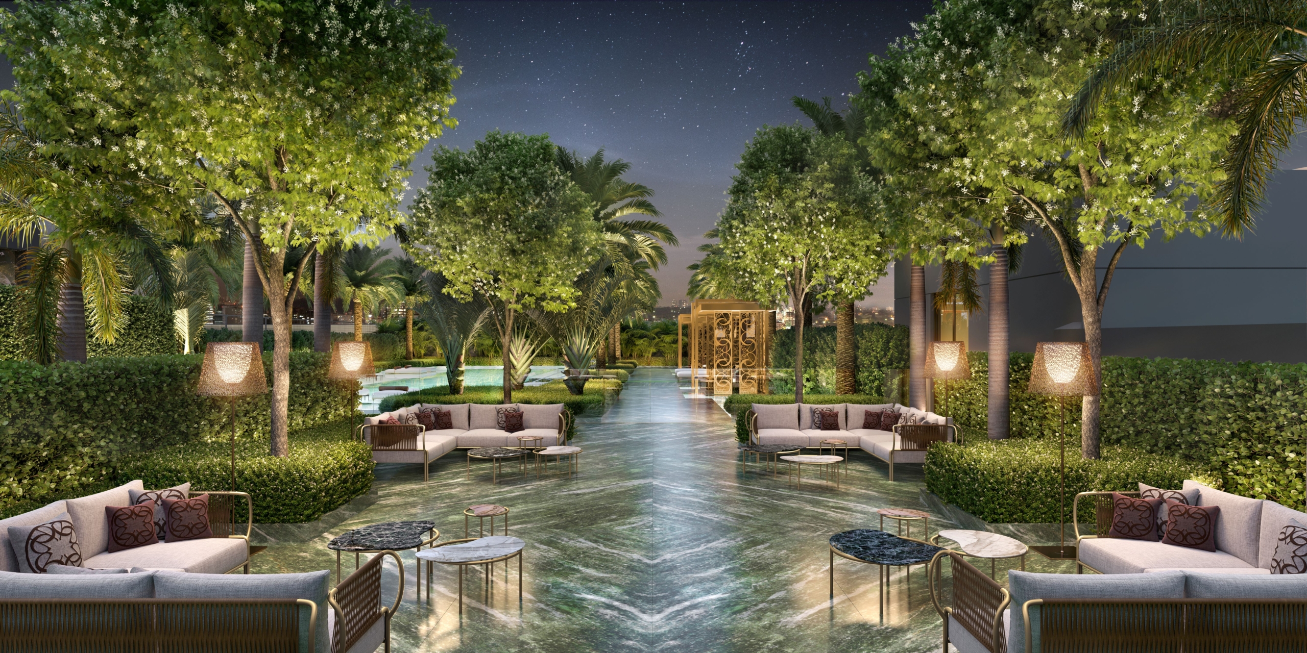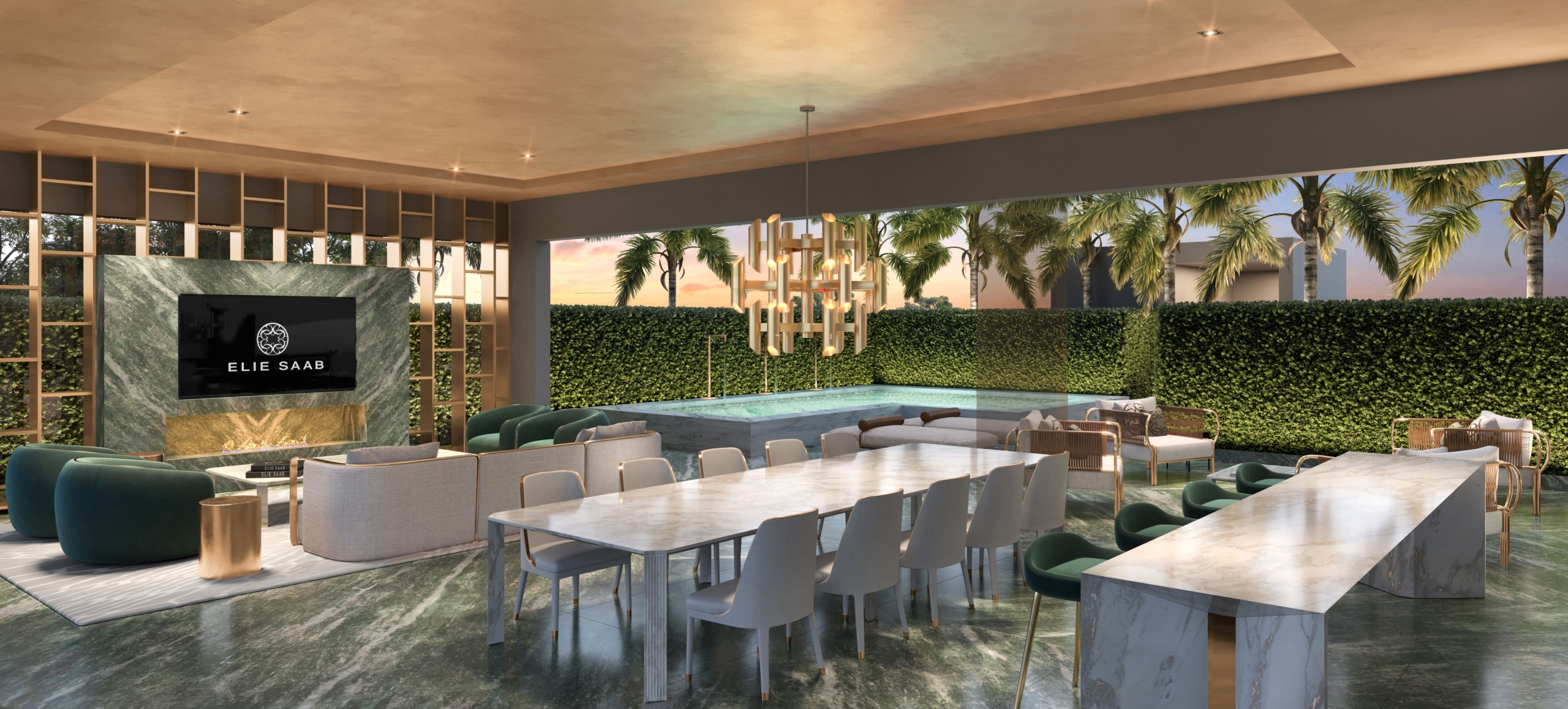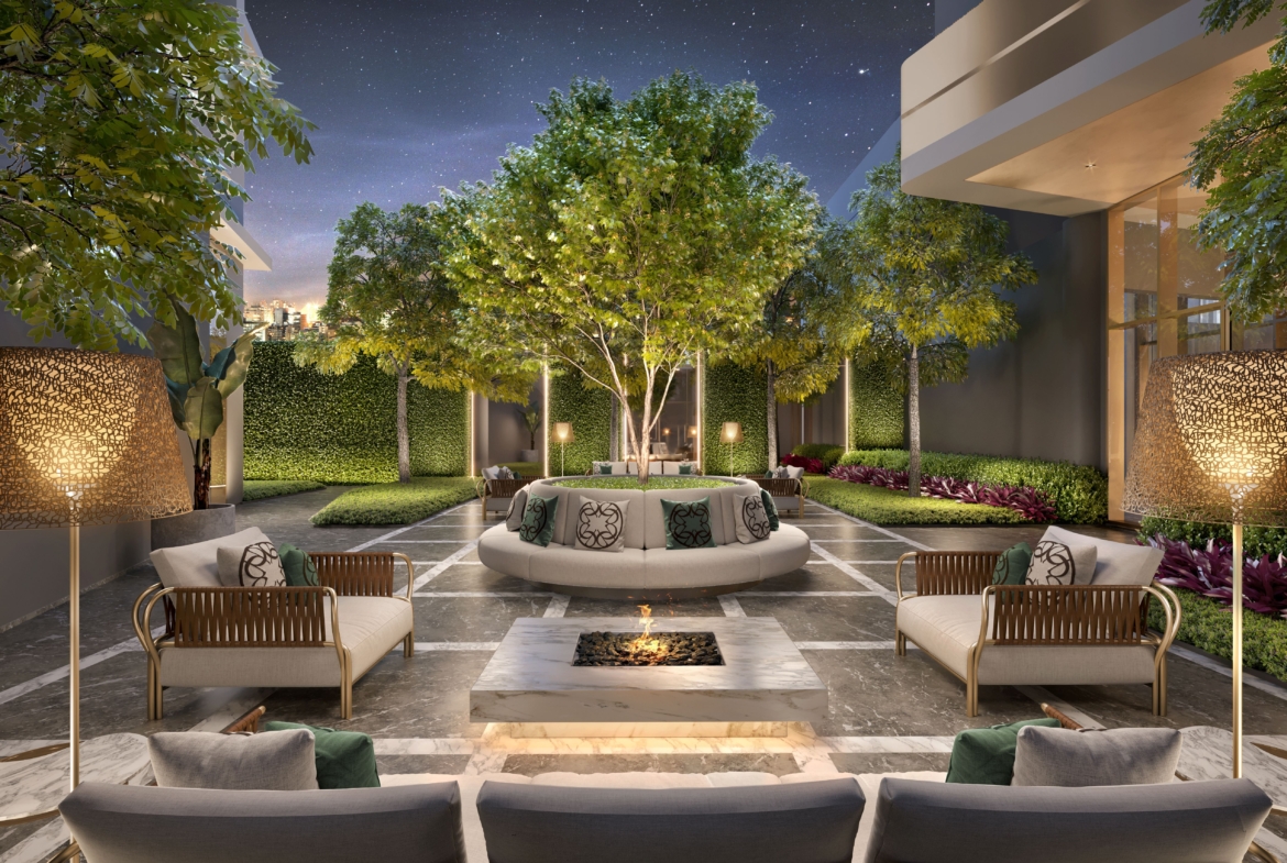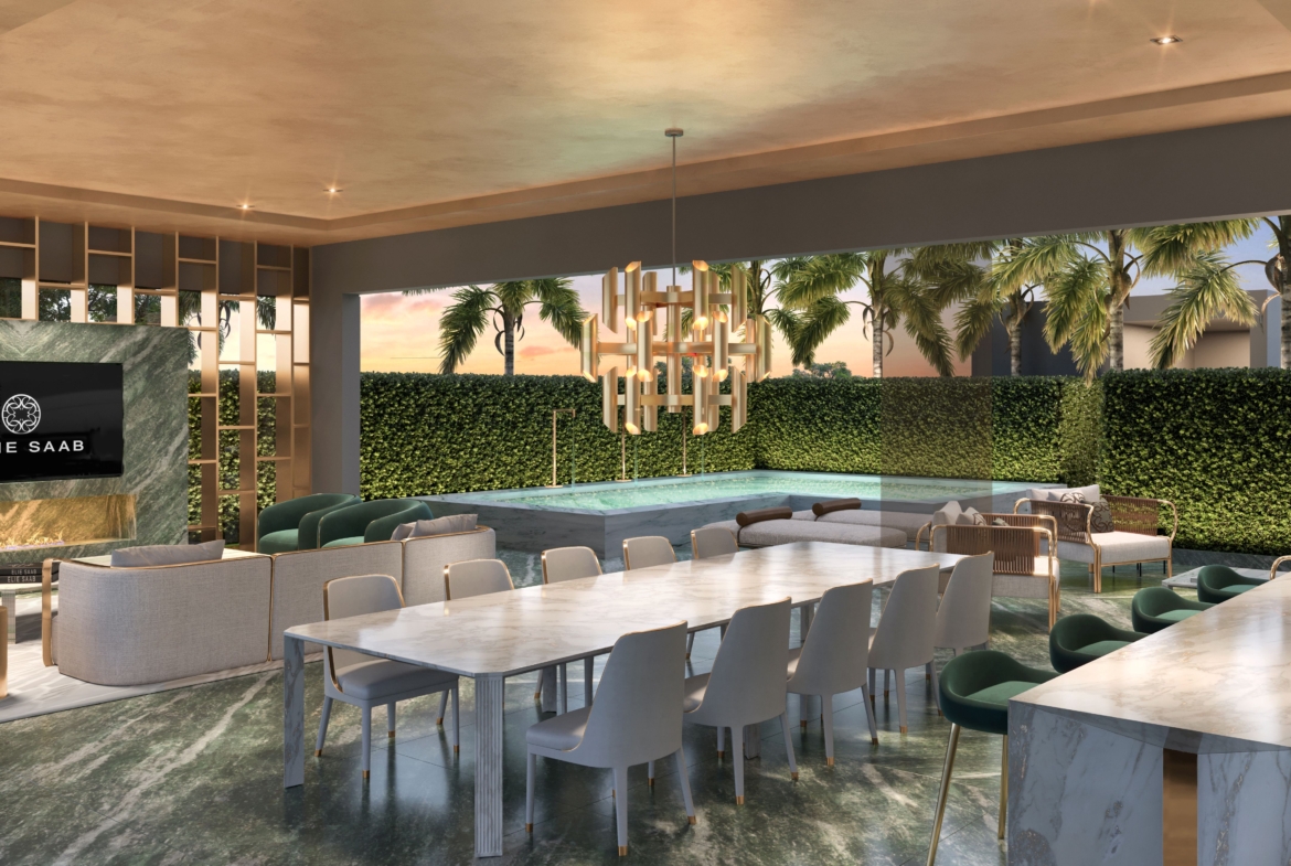 O projeto ocupa uma área de aproximadamente 7.500 m², com uma estrutura única de lazer com espaços como quadra de tênis, beach tennis e private pool house, em um ambiente repleto de conforto e privacidade. As áreas comuns contam com peças exclusivas da coleção ELIE SAAB Maison, desenhadas pelo estilista, unindo qualidade, elegância e sofisticação.